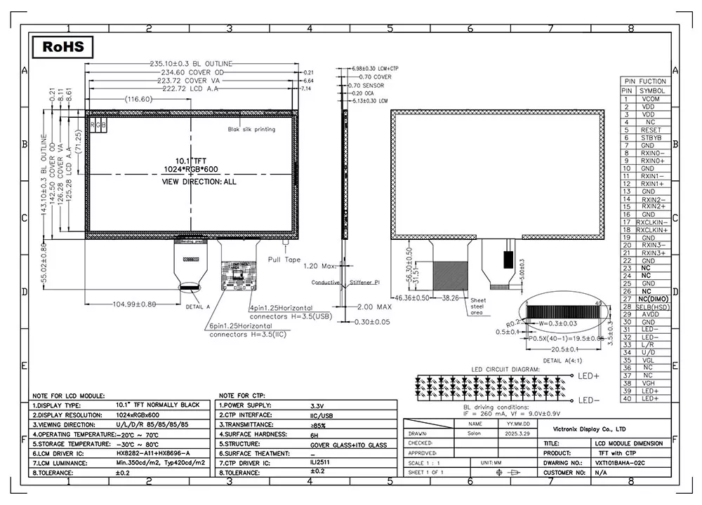 Ing umur intelijen, modul TFT ngidini kita nampilake data sing dibutuhake kanthi visual. Kualitas Modul TFT duwe pengaruh kritis ing aplikasi kasebut. Apa kaluwihan mikal 10.1 inci 1024 × 600 LVDS TFT Modul kanthi CTP? Wiwitane, padhange 420 CD / M², 800: 1 Kontras aspek, sudut pandang 80-derajat ing kabeh arah, lan 75% keseragaman njamin perumpamaan sing jelas. Kapindho, ndhukung antarmuka lvds 6/8-8-8-bit kanthi panel sentuhan hx8282A11 lan panel sentuhan kapasitif 5-titik kanthi cithakan Ili2511 CTP. Kajaba iku, nampilake latar mburi putih putih 3 × 13 sing dipimpin 30,000 nganti 50,000 jam, njamin panggunaan jangka panjang ing macem-macem aplikasi industri. Kajaba iku, tundhuk karo standar rohs lan sukses tes linuwih linuwih, kalebu kejut termal, asor, lan ESD perlindungan nganti 8KV hawa lan 4KV kontak. Produk iki kanthi efisien ing suhu sing ekstrem saka -20 ° C nganti + 70 ° C lan bisa tahan kahanan panyimpenan abot saka -30 ° C nganti + 80 ° C.